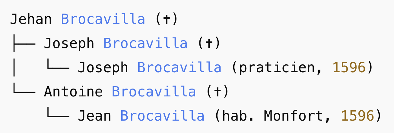 Yolande de la Tono m’intrique depuis quelques temps. Ce nom de la Tono ne correspond pas du tout aux noms de famille des Monfortois. Je vais essayer de déterminer qui est ce personnage qui a un lien assez fort avec la famille pour faire de l’un des siens, légataire universel. Il s’agit de Jehan Broqueville. […]